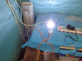 Thursday afternoon and most of Friday I spent the day working on the solar power system for the medical clinic which has become non-functioning. Basically it does not keep enough of a charge to run things first thing in the morning or overnight. Or at least the DC to AC inverter and the five phones they are constantly charging. One thing I have learned those phones are important, many operate as the flashlights by the staff members. The lights were removed from the building previously and there is some question as to by whom but I will go with the evidence on that factor. I had brought out four new lights, this time DC lights. I was thinking that the lower power DC lights may take four to properly illuminate a room for medical purposes. After a test run, the doctor felt two per exam room and his office would be sufficient but I explained a plan to create some directional lamps that would be DC powered as well and he liked that idea. So after going through the mess of cut up wiring above the ceiling, I found enough pieces to properly wire two rooms. Now the next step was figuring out how to rewire one of the switches still in good condition to interrupt a DC light circuit instead of the AC system they were designed for. It took two tries to make sure I had it right but then we were in business. Unfortunately the only ladder on site is made from spare wood parts and is a straight ladder-nothing to do the work at ceiling height. So I had to lower the cables down to working height standing on a chair and then pull the cables until the light fixture was at the ceiling. Not my best work, but considering the obstacles I will take it.