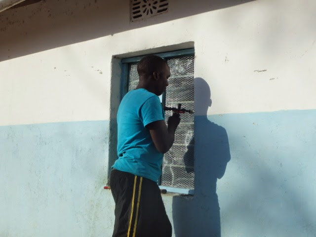 The other work going on this week was to start installing mosquito screen on all the windows on our buildings. For this I hired some folks locally. A couple of things about this process to help those who are not used to the Tanzania way of doing things. So the two carpenters show up to do this project. I have bought all the material and fortunately all the tools we did not already have to do the job (originally I planned to do it with helpers only). They show up with an extremely rust and dull hand saw and hammer. That is the extent of the carpenter’s tool bag here.