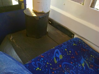 William finally gets there and off we go. The truck is a 1996 Toyota Land Cruiser-one of the most ubiquitous vehicles in Tanzania-one of the important features we wanted was a vehicle that parts would be easy to find even if they were lying about a shade tree somewhere. This particular vehicle does not have the safari style pop top (the tops open for safari goers to stand up in the vehicle and take pictures of animals) but instead a luggage rack on top. The luggage rack is strong enough for lumber and pipe to be carried to site. The back seats are arranged facing each other which works well for the ambulance layout and for carrying supplies in the main cargo area. The vehicle is clean and in good physical shape and appearance. There are minor things wrong like the tab on the driver side door lock is broken (just the plastic tab not the door lock) and the foot pedals are all bare metal with no rubber grip. Major concerns are the fact the tires are in bad shape and it has 120,000 Km and the belts have not been replaced.