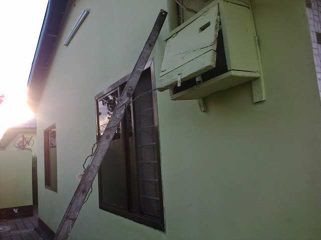 Let me describe the welding operation first. As I walk in and turn the corner on the outside of the first building, I see a metal ladder. Not aluminum just structural tube welded together to form a ladder. It is positioned next to the main connection and breaker for the electrical coming into the hotel. That box is open and there are two light guage wires connected directly to the electrical breaker. Those wires then run down the wall and along the cement paving stones to the courtyard. The wires are two short to reach all the way so at two different locations they have made bare wire twist connections. No wire nuts, no splice connectors not even electrical tape.