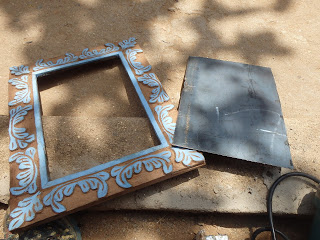 Back to this weeks episode-decorating the house or at leas the kitchen area. While on vacation with the family we went to Zanzibar where I picked up a couple of carved wood frames. I decided to start with one of those and make a message board.