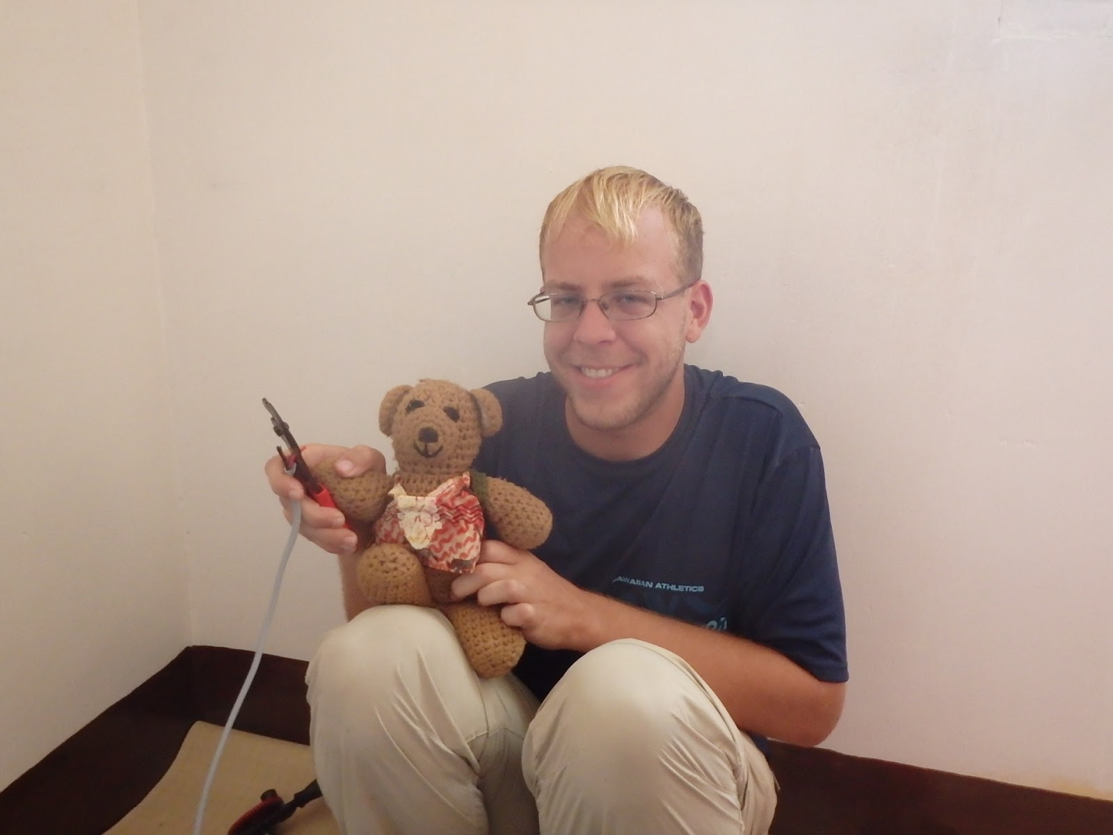 We finally got the male plug for $1.05 after the exchange rate and headed back. After that it took about 15 to 20 minutes to make a long extension cord using the wire I had brought and the female outlet along with a wall box to protect the open wires. Kyle was a quick study and put it all together along with Barnabas. I left as it would be hours before the power was back on to test it. Kyle did tell me it worked great after the power to the region was turned back on.