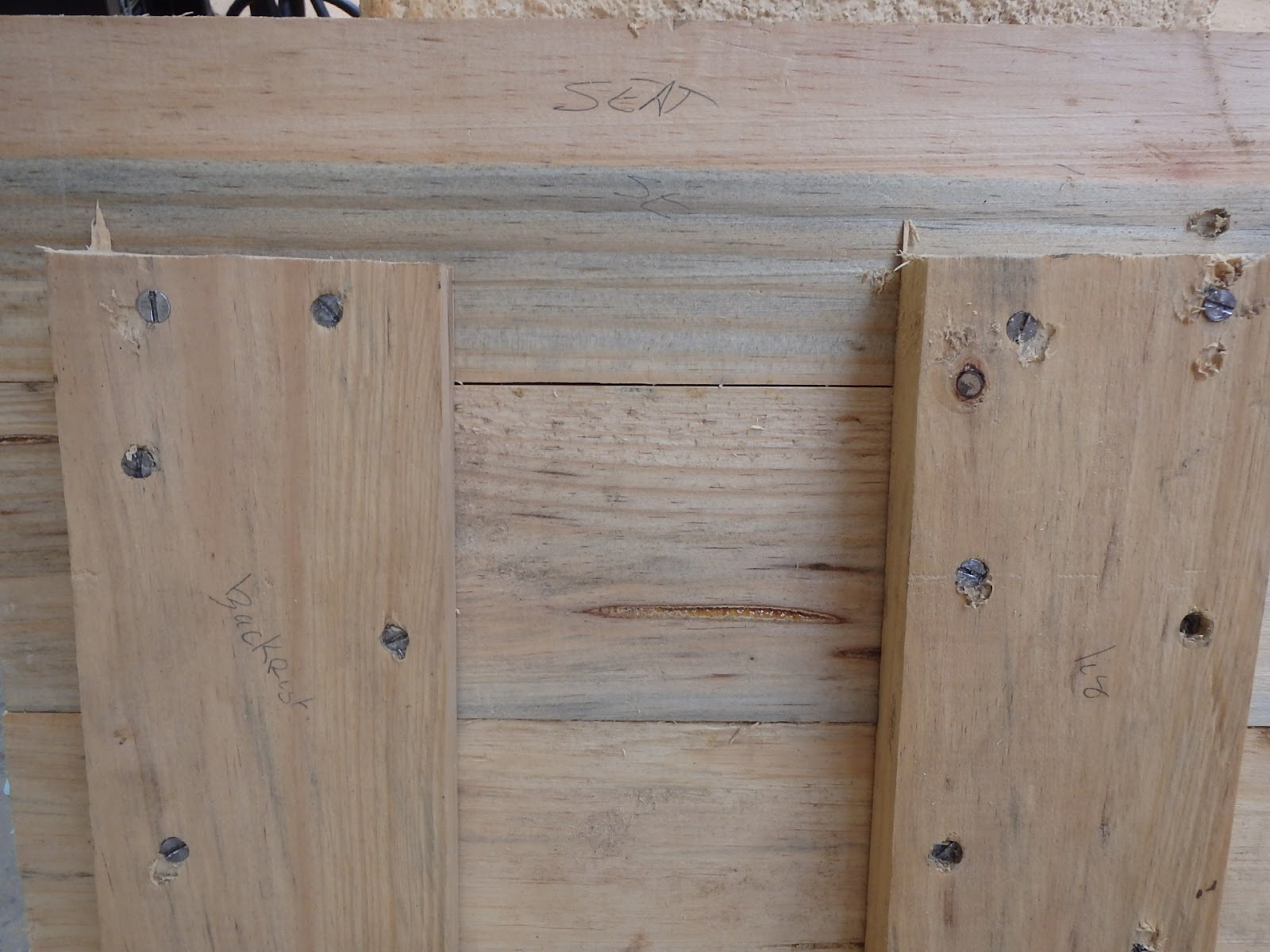 I made similar cuts and braces for the seat at 16″ and the leg at 16″. I also marked all my pieces so I knew which side was to be where and what they were for.