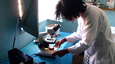 First up is a big thank you to a private donation so that we could purchase a brand new binocular microscope with an LED light to take advantage of the solar power generation. The picture is of Gifty testing it out.
