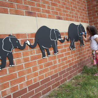 Playground Equipment: Art Center. We would build several metal stations that can be folded up and stored out of direct sunlight. The idea is these stations would be in shapes of things like a house, flower, elephant. They will be painted in blackboard paint so the children can draw on them using chalk. The cost is for three shapes to be built.