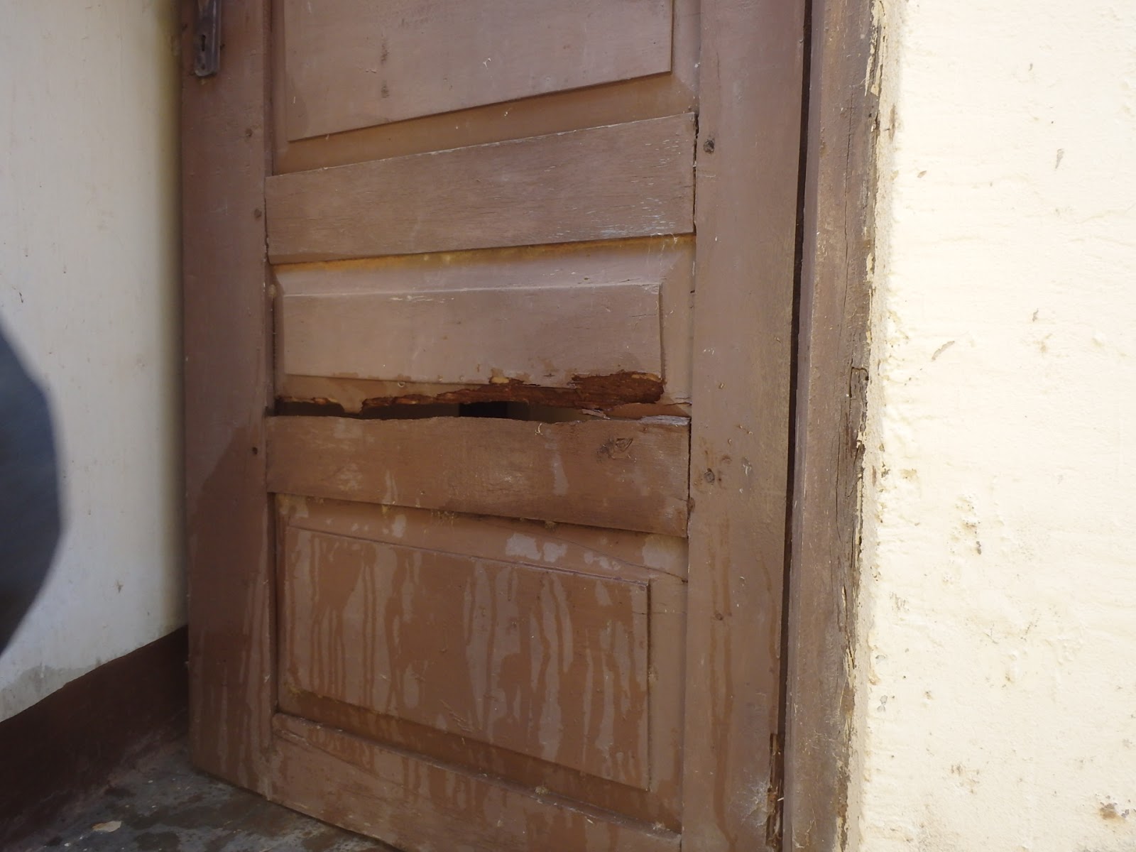 Last up was repairing a door that was partially damaged from some type of rot. this is a panel door on the ward building. They don’t sell wood putty here so we busted out the gypsum plaster and mixed it with a little cement and applied it to the door. A couple of good coats of paint and hopefully it will last several years but if water is able to penetrate the repair it will not last a long so this has to be on the list of repair watches.