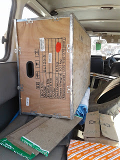 The last of the tools I purchased with the generous donations to the electric tool fund was a jigsaw. I am very excited about what I can do with that and my new find of plywood. For those of you who don’t do facebook, a Peace Corp friend helped me track down a source of plywood. It is the boxes they ship motorcycles into town in and since they ship a good many in I am hoping it will be a steady stream. It is thin plywood but I am still excited about the project I can do.