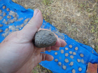 Wednesday: Again up semi early at 7 and the normal routine though I washed dishes the night before. I started the work this morning by making those concrete stones as discussed on Tuesday. I made 75 and they ranged in size from quarter to about 1.5 half dollar. This took longer than I thought but mainly because I made the mix a little wet so I had to mix it longer and work the stones a little more.
