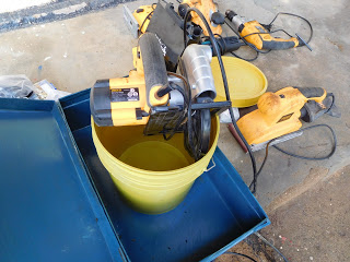 Now to start putting a toolbox together. I am going to start with the electric drill. The battery powered drill is actually in a plastic fitted case so I am going to leave it be and just do the electric drill and all of my drill bits and accessories. First everything needed to be cleaned.