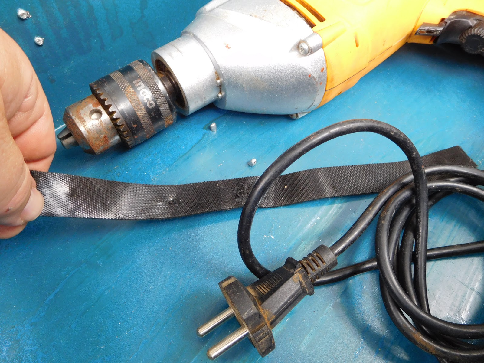 Next I want to attach the drill using velcro strips and rivets to hold the velcro to the box.