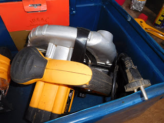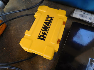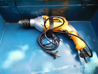 Now to start putting a toolbox together. I am going to start with the electric drill. The battery powered drill is actually in a plastic fitted case so I am going to leave it be and just do the electric drill and all of my drill bits and accessories. First everything needed to be cleaned.