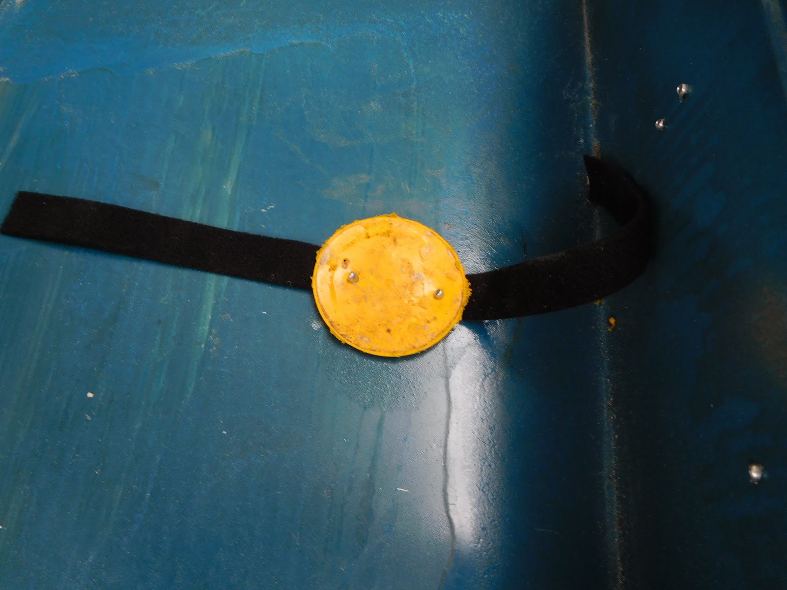 I was worried the velcro would pull loose and it did. I don’t have a good washer selection on site and did not want to wait until I went to town again to work on this so I used the plastic lids from spray paint cans and cut them up into small pieces and drilled through them. so they would provide something harder to sandwich the velcro between.
