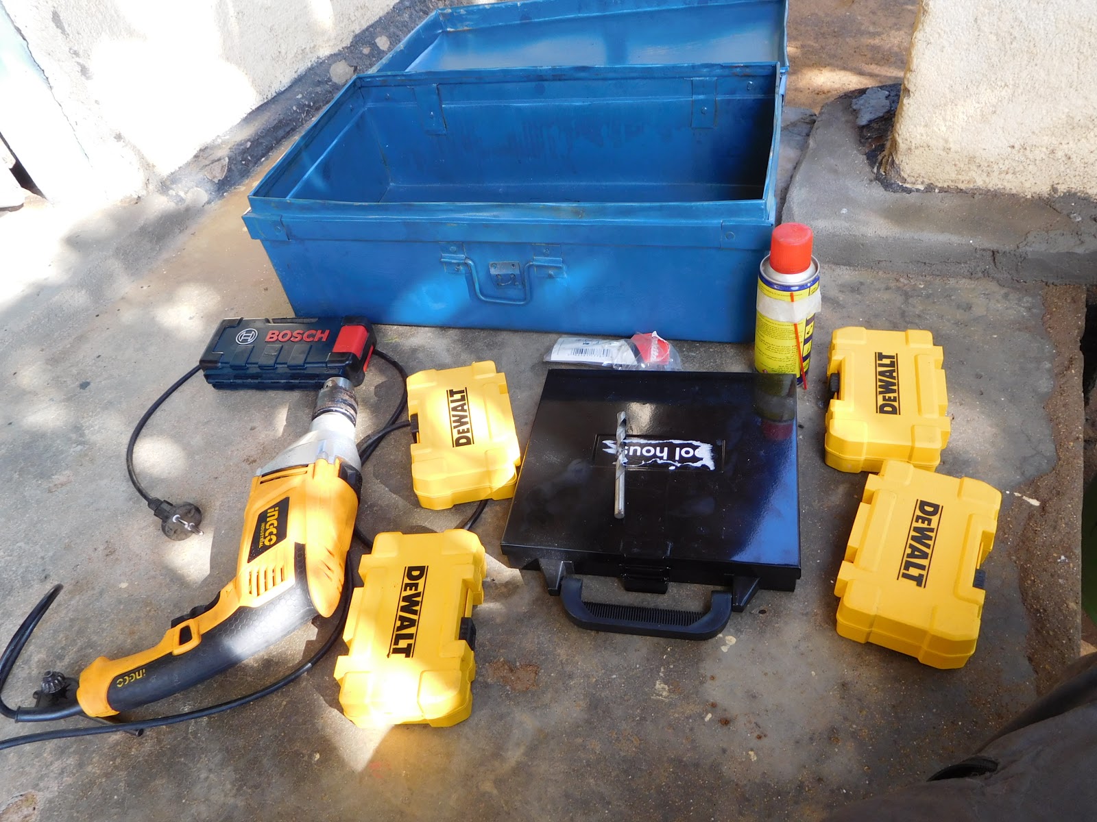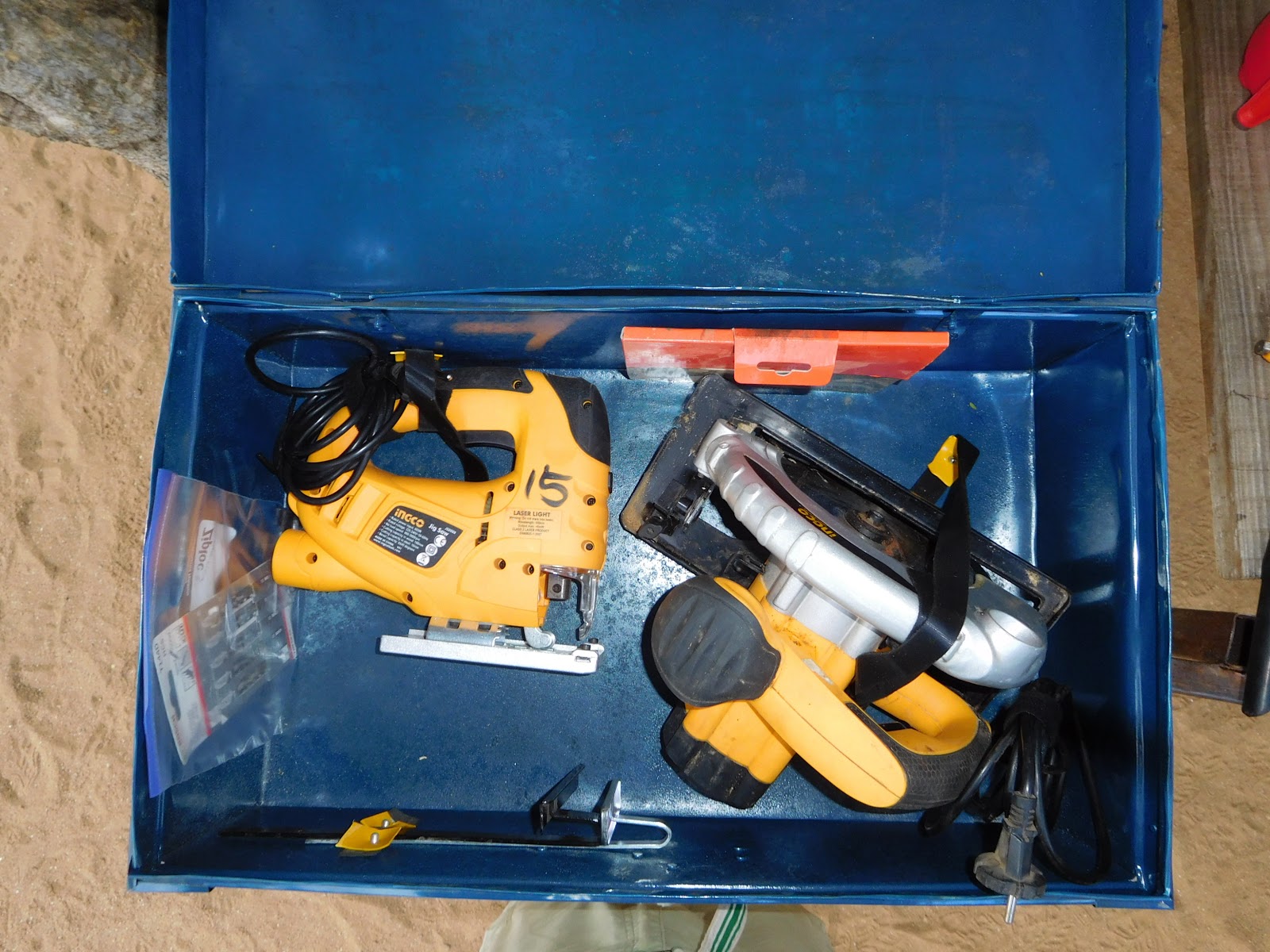 Thanks to the generosity of many of my readers and groups at MUMC I have been able to purchase a nice selection of power tools to make work easier here at our site. As I started to acquire these tools I knew I needed to think about good ways to store the tools and their accessories so I would not lose anything especially since the grass cutter constantly moves things around. Another big reason I want them in toolboxes is that the critters all do their business and it ends up all over my tools as you will see in some of the later photos.