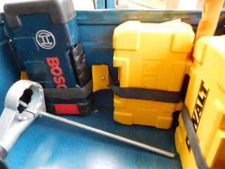 The saw box was much easier to make since their were fewer items. In fact a lot of the small items I just put in a ziplock bag and put it inside the box. The velcro held the circular saw in place as I carried it around.
