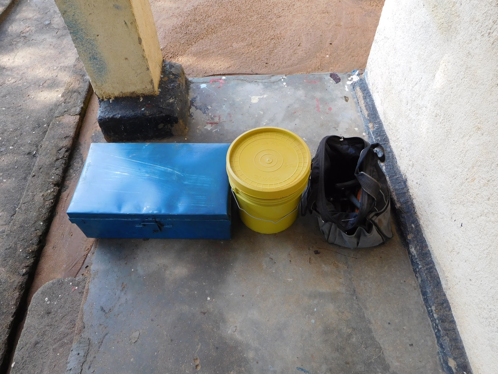 I considered three types of tool box/bags/containers: metal boxes available everywhere in Singida, 3 gallon or 5 gallon plastic buckets also available everywhere in town, or canvas tool bags which are only available in Arusha. So I purchased one of each. The canvas bag was one I had been given in the states, the 3 gallon plastic bucket cost roughly $1.5 and the metal box which is the smallest version they have cost $7.5 roughly.