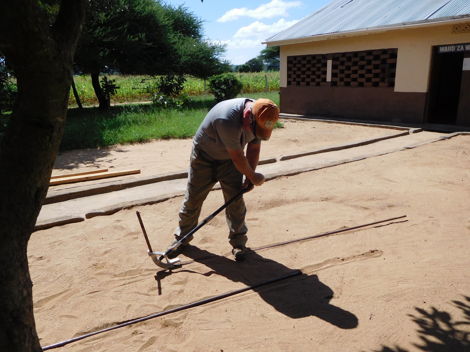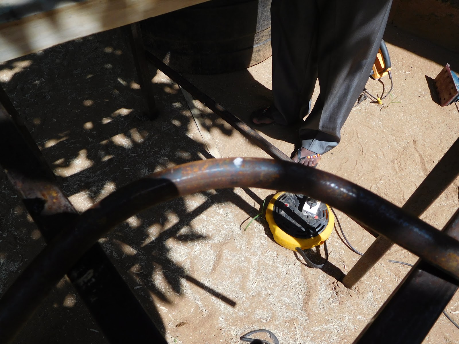 This week I also got to use one of the new tools sent over with the team last year that Mr. Campbell bought for us. The pipe bender made a much easier job of building the sign our district medical office has required we install along the road. It has been a while since I have used a pipe bender so the first bend was a little off the mark but still worked. The second bend was on the money with my mark falling dead center in the curve. I then welded some small pieces of flat bar and drilled through to attach a piece of sheet metal that will be the sign. I decided to use bolts instead of rivets because I may have to take it apart to send it to a sign painter since William cannot find the guy who paints all the signs here in the valley.