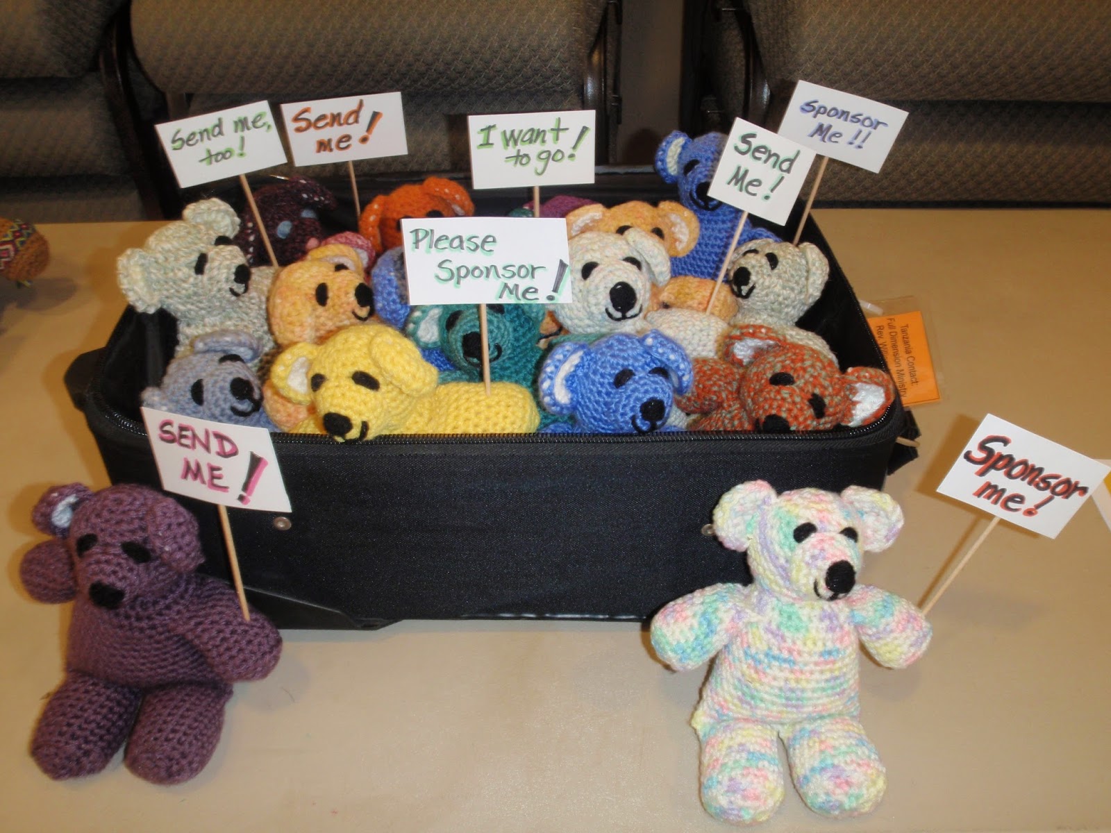 L: I’m not sure that there is just one function of the bears. The obvious would be to bring comfort and a little joy into the lives of those receiving them or put a smile on the face of someone who has nothing. Our church has a mission statement “Touching Lives for CHRIST.” I think that is what the bears do. They touch lives for CHRIST.
