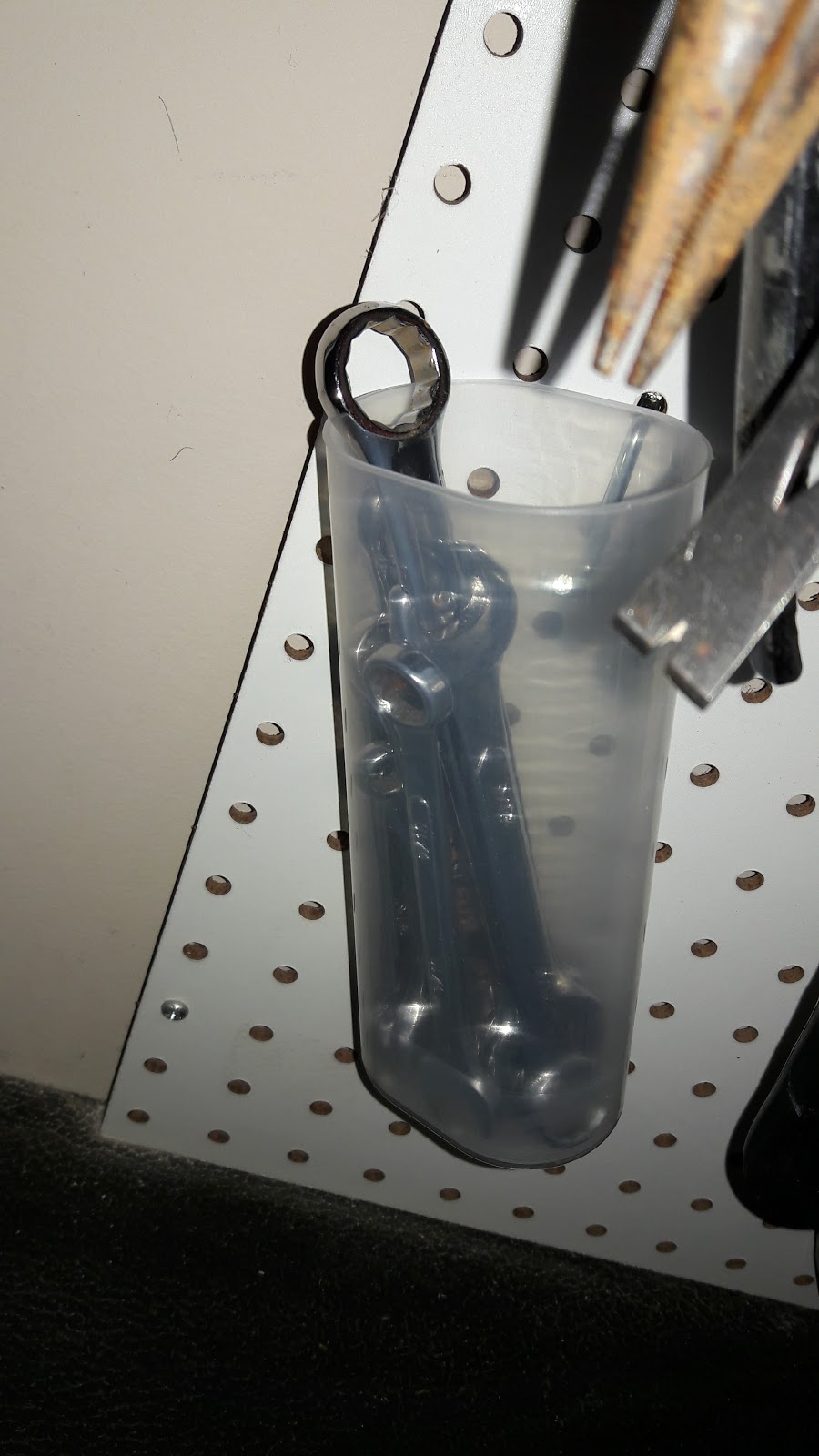 | This container got repurposed to hold loose wrenches |