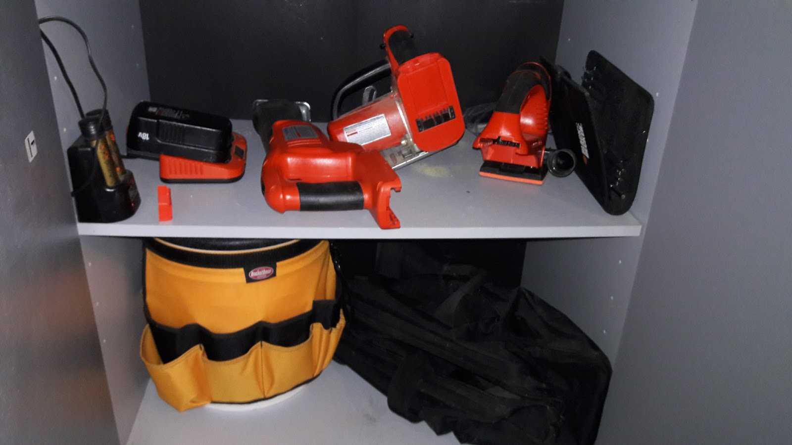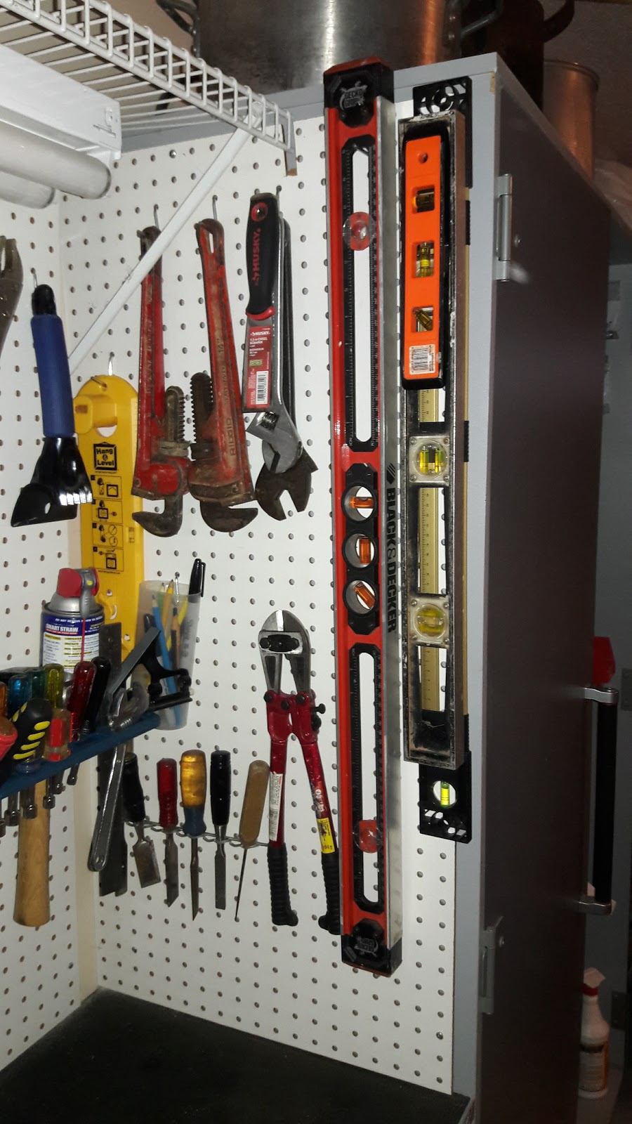 | all those tools from the plastic bins now out where you can get to them. |