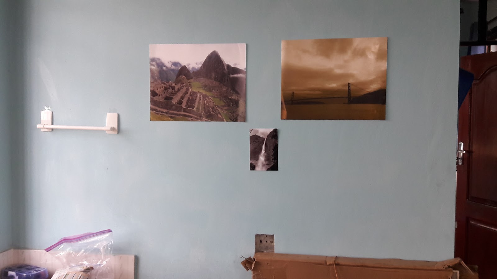 I even bought a metal picture print this year and took it with me. I also used the Command Strip picture bar for some pictures of family members. I bought curtains because the ones I brought over from my house in the states were not long enough for the windows here. I do hope to use them to cover my mattresses on the day bed, but currently just have them draped over.