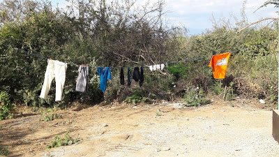One of the first things you do is wash everything stored since my last time living at the site. Clothes, dishes, pans. So you have to put up a clothesline and wash clothes every day to get the entire stored amount done. While I have reduced on most things I have to keep a minimum of two weeks clothes available because when a team comes in I don’t get a chance to do laundry while they are here.