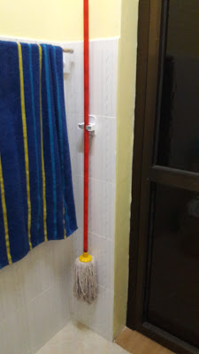 Lastly I used a Command Strip device to hold brooms and mops to hang my mop up in the bathroom so when it drips dry it will do it on a tile floor with a floor drain. And that is pretty much the bathroom. Like most things here you have to clean it more often due to the dust in the air, small ants and some flying insects that get in. I normally give it a through disinfection 3 times a week with the biggest one on Saturday.