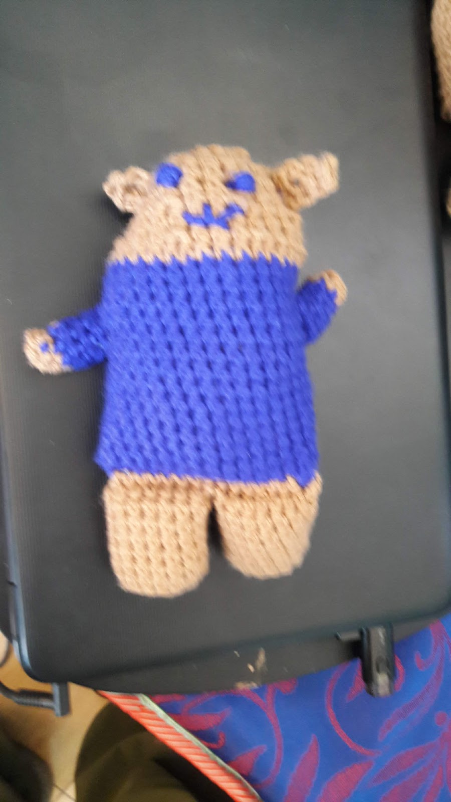 I mentioned a while back that because customs has gotten so tough on small items that we cannot bring the bears into country anymore and so I decided to make as many dolls, stuffed animals as I can before the July team arrives in hopes I will have enough. Well the little guy below is a new “bear” pattern I got from one of the yarn companies. I really think it looks more like a mouse than a bear, but I doubt the kids here will care, there are no bears in Africa.