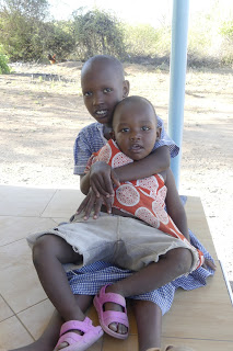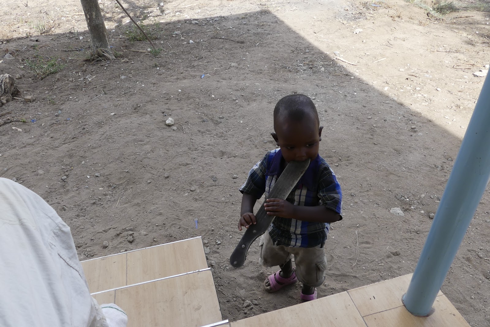 Now that she is here, she has become the primary caregiver to her younger brother, Marco. Marco is old enough that he can walk everywhere and there seem to be no limits to where he can go exploring. Marco is not old enough to form words yet. Again, this is common in Tanzanian culture. One of the running jokes is when a group wanting to visit Tanzania and put on a Vacation Bible School they asked about safety scissors for the children and I told them the same children would be carrying a machete that afternoon or cutting up vegetables with a kitchen knife for dinner.