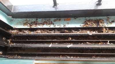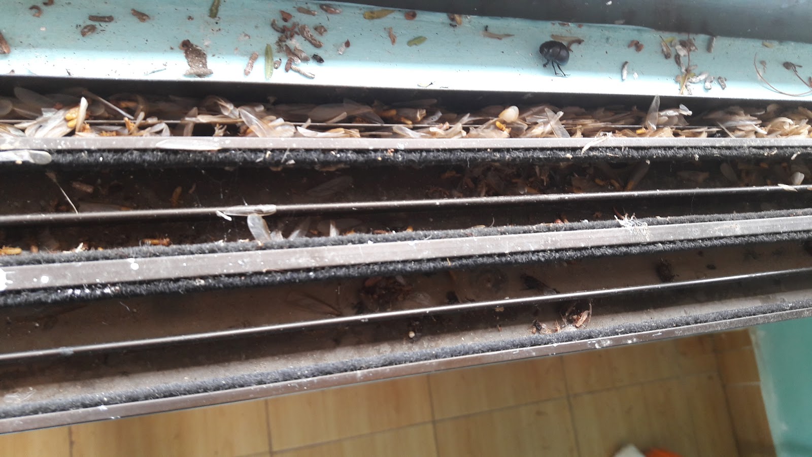 The problem arises from the fact the dead insect bodies are all in my window tracts and I have no access to a vacuum cleaner to suck them out. They piled up so high one week that I could not close my windows. So how to clean them out of those tracks on a regular basis. I used an air pump with the balloon nozzle to force air into the tract and blow the debris into the air where either it will go into the house and I will sweep it out or it blows outside where I would sweep it anyway.