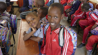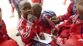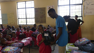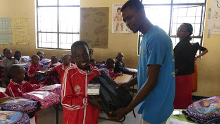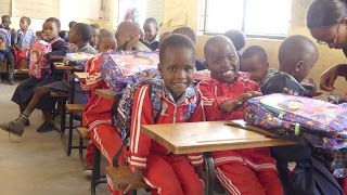 It is Christmas time and the last day of school, we gave out presents to the kids thanks to Zion United Methodist in North Carolina. All the kids got a backpack (most of the Dora the Explorer this year), six exercise books, two pencils (courtesy of MUMC team), sharpener, erasers, ruler, toothpaste, toothbrush (courtesy of MUMC team), a coloring book, puzzle, bracelet, a couple scripture coins, crocheted washcloth, box of crayons, toy car, additional toy based on age. Those moving up to Standard I got their own copy of the 100 Best Loved Bible Stories book we use for devotion time. I am going to put a bunch of pictures here (but still not all of them). Please scroll down to the bottom because I have some additional information you may or may not be interested. For those that are curious we gave all 100 students, the two children from our teachers not yet students and all the staff their gift bags for around $9.50 a person.