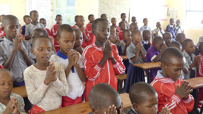 • We continue to have morning devotions using Best Loved Bible Stories books purchased in Arusha.  The big change is that students from Standard I and II now read the stories to the pre-school students every morning.