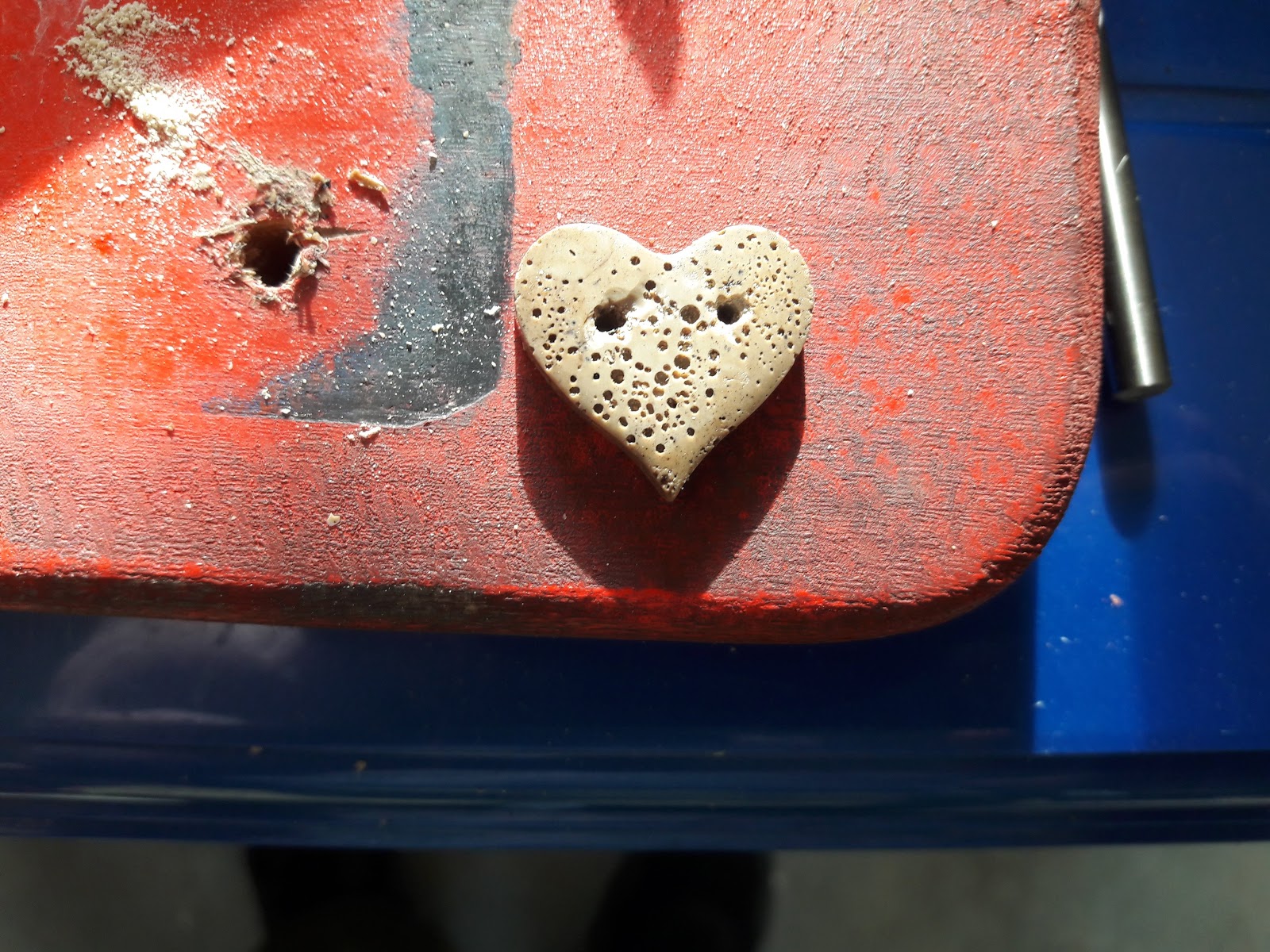 The above is a heart shaped future necklace or bracelet charm made completely from recycled PET or #1 plastic. This is the part of the water/soda bottle that is the bottle. It is often clear and flimsy. This turned out to be the hardest to recycle to date and I am still experimenting to get something easier to produce that is nicer looking.
