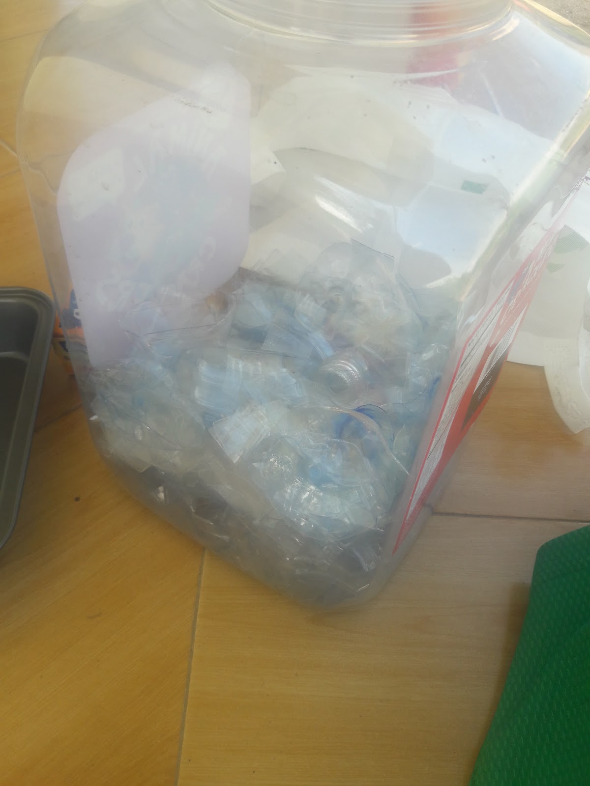 | Reusing a container to store the bottles I cut up. This is about 15 bottles. |