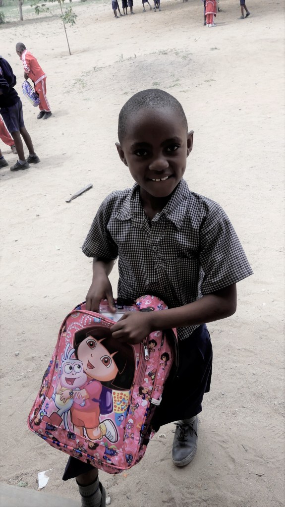 I am not sure I would call her excited about school, but she is a good student and is excited about hanging out with her friends. She joined our school at the beginning of 2019 so the last Christmas was her first with us. She was so excited to get her book bag with gifts in it. She is good about taking care of her gifts as well. That book bag looks just as nice as the day it was given to her.