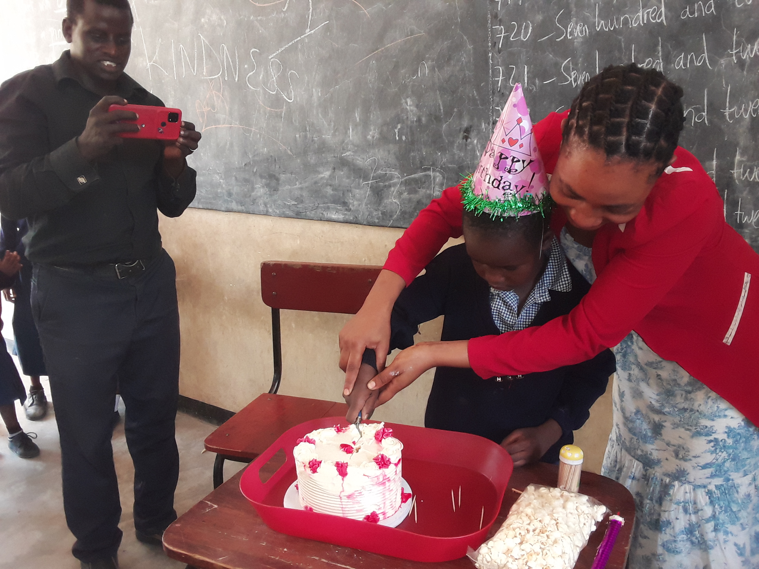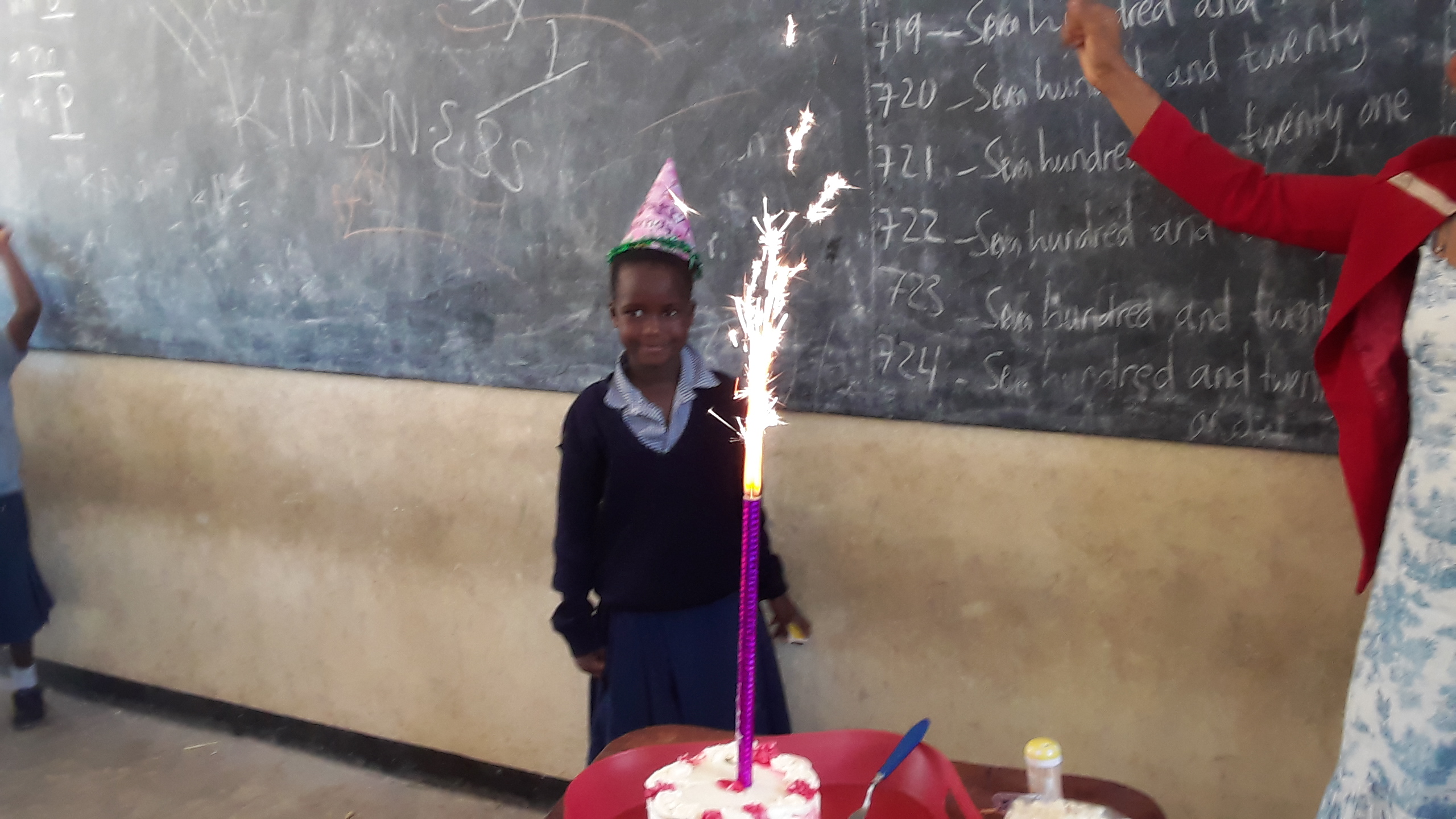 This week we celebrated her 7th birthday. She is now a standard II student. We had quite a celebration complete with cake. They had the other students sing happy birthday to her about 20 times while they had her pose for different pictures.