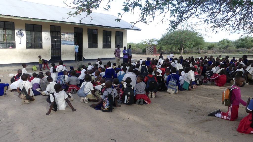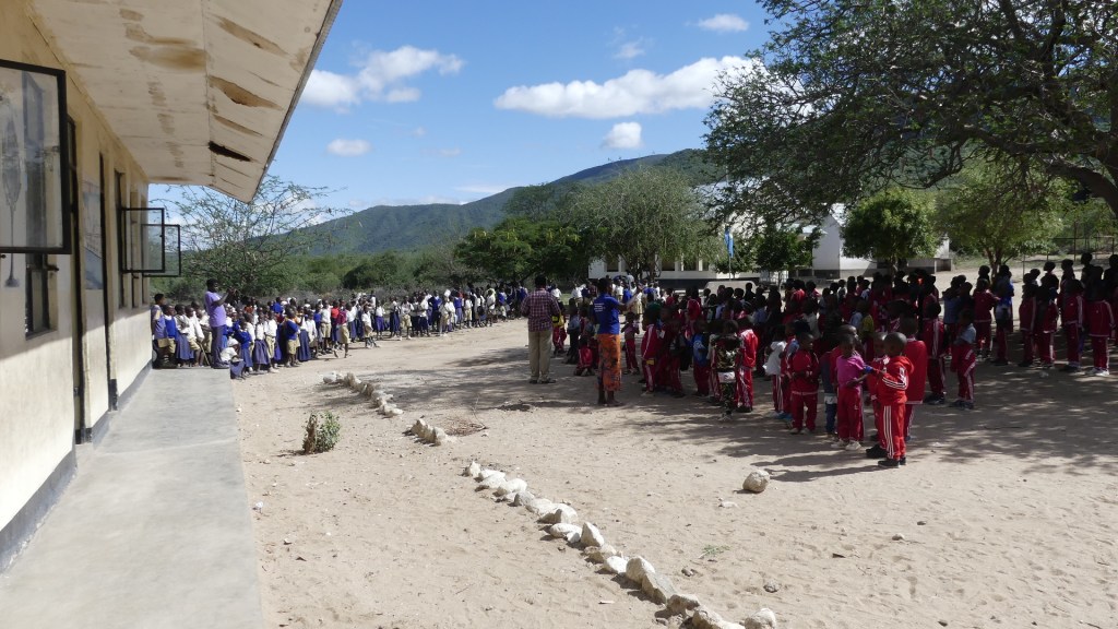 The match started with about 100 kids from Kiruani Primary showing up and “meeting our students” in a formation. At first it looked like two gangs squaring off against each other in a musical. But then they made them “integrate” or “mix” which meant clusters of students from each school hanging out together.