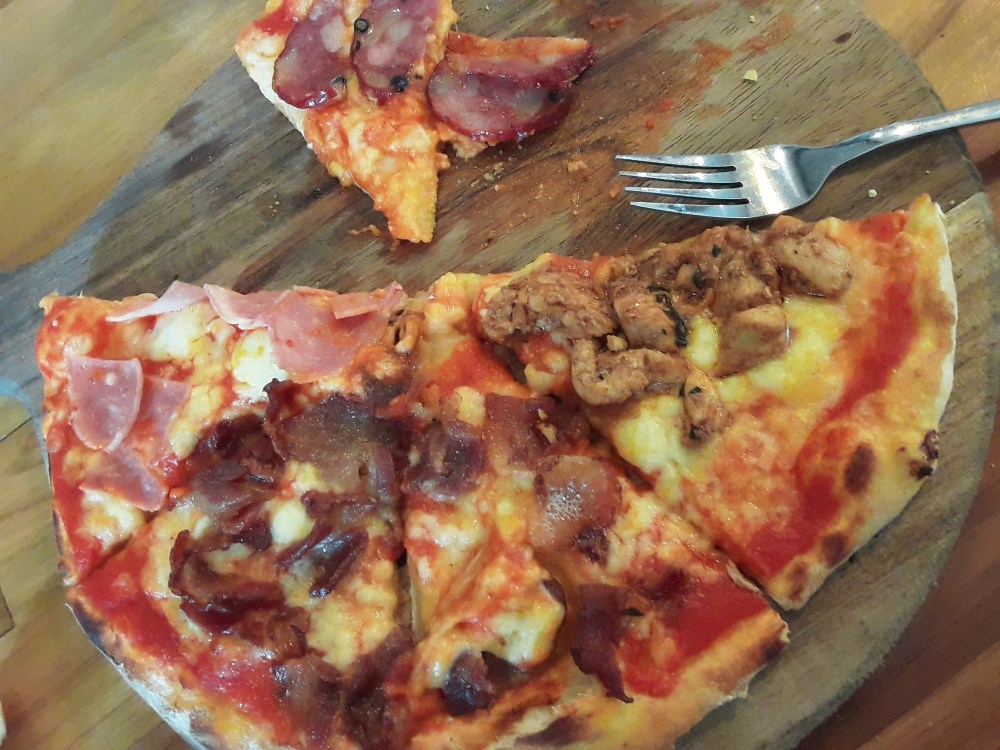 Blossom’s Cafe is the best hamburger in town though most of the ground beef is lacking the fat content to keep them properly together. My favorite meal in Moshi is at the Jackfruit Cafe in the shanty town part of Moshi and it is a four meat pizza. Once again that is different than what you think it will be. They put a different meat on each quarter of the pizza. The reason I like this one is that it has a decent amount of cheese and they don’t skimp on the meats. It has salami, bacon, bbq chicken, and ham.