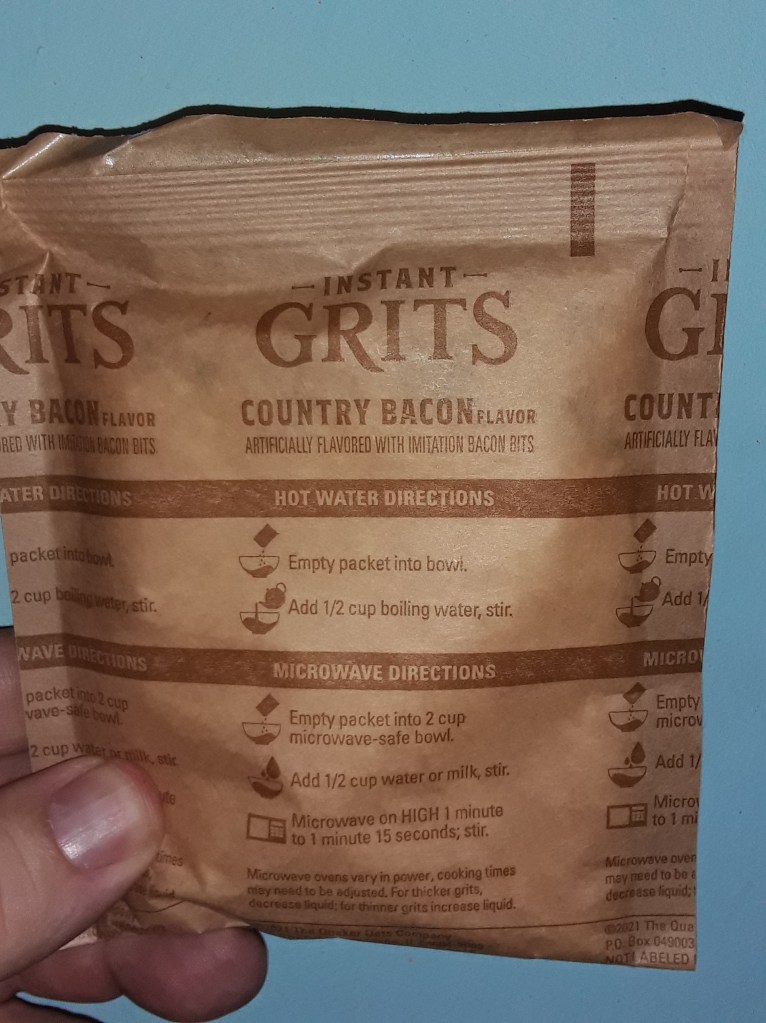 For dinners I do a lot of different things from eggs and grits mix I bring from home (instant not real), sometimes I make soup from mixes and boiling water or oat mill type dishes since Oats are easy to find in TZ. I also get SPAM singles in the USA to mix in with the eggs sometimes or eat like a sandwhich.