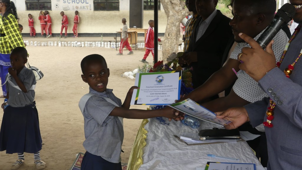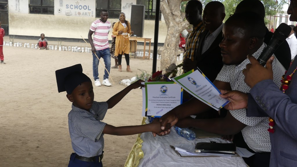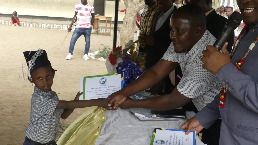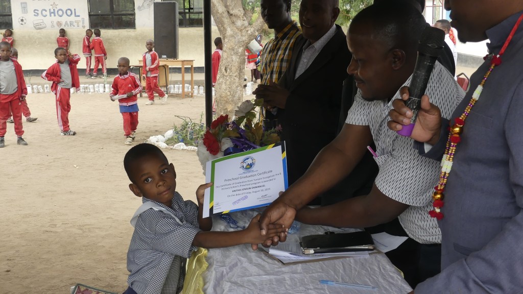 This year marks a major milestone for Tumaini Evangelistic Pre & Primary School. At the beginning of this year we added the final Primary grade-Standard 7-to our school. We held the graduation ceremony for that class on August 30 even thought the class does not take their government exit exams until September 11 and 12. Most Tanzanian schools hold their graduation before the exams are held and before the results are known right around the beginning of the new school year. While I am confident that all 8 students will pass their exit exam and be eligible for Secondary school next year, how well they will do could help determine their ability to get into certain schools.