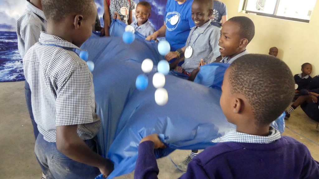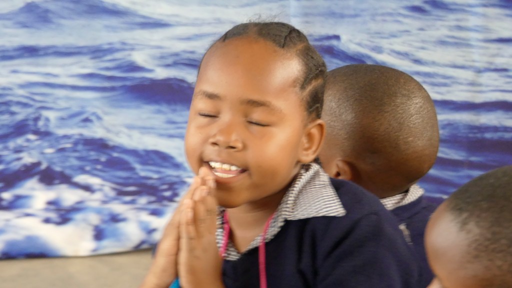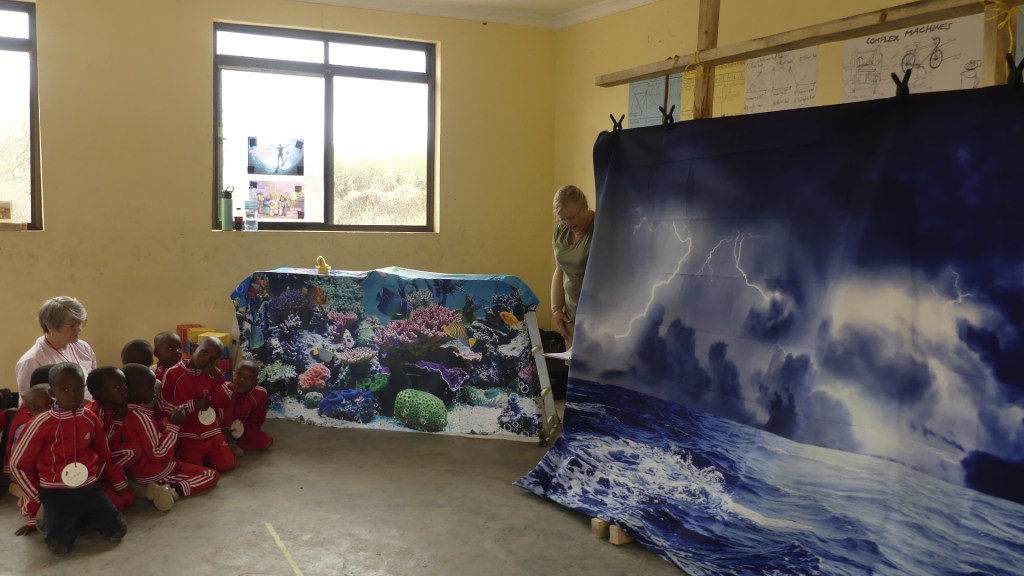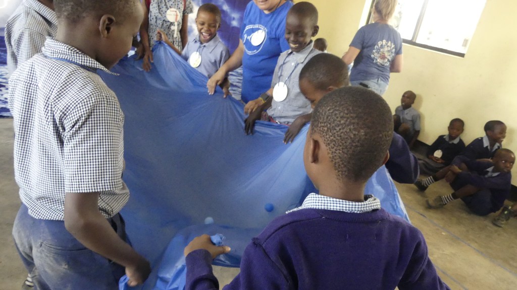 It all worked and I think the kids enjoyed the Bible story time a lot. Sharon, who led this station, put a lot of effort into her station. We had an activity where the kids stretched out a plastic table cover and put ping pong balls inside as their “worries” and then when the storm hit they would bounce them off to signal their inability to control them in rough times.