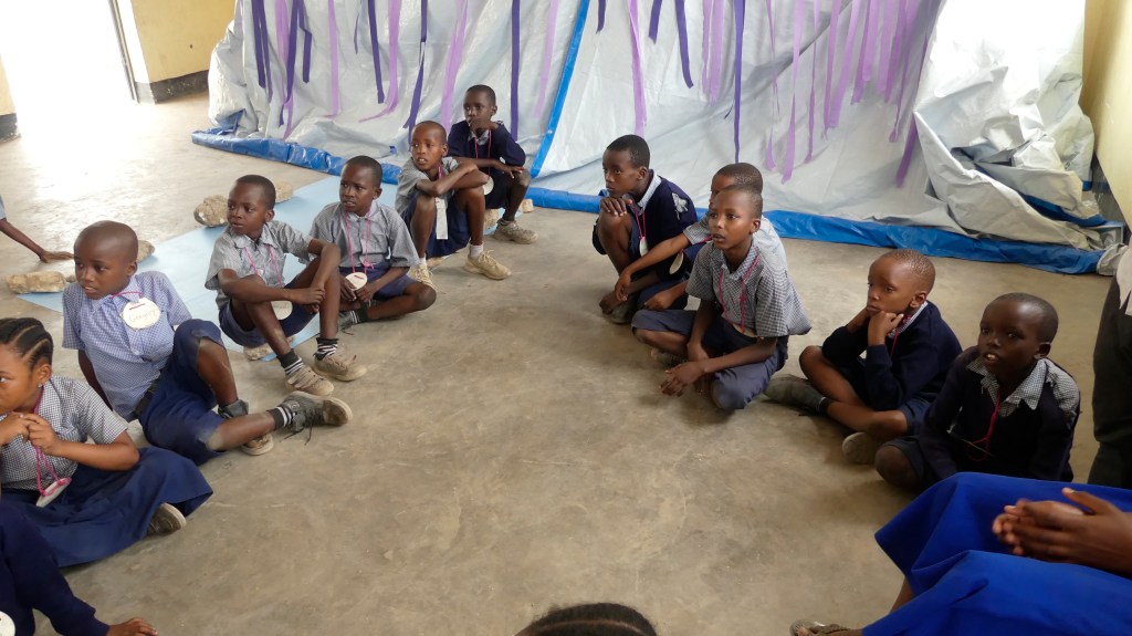 I should back up a little and explain that the week before I built two different structures for the Bible story station which I will be calling Station 1. The first and more daunting was the inside of a whale’s stomach for Jonah and the Whale. It needed to be big enough for 40 kids to sit down, and some curve to it since stomachs are not cubes.