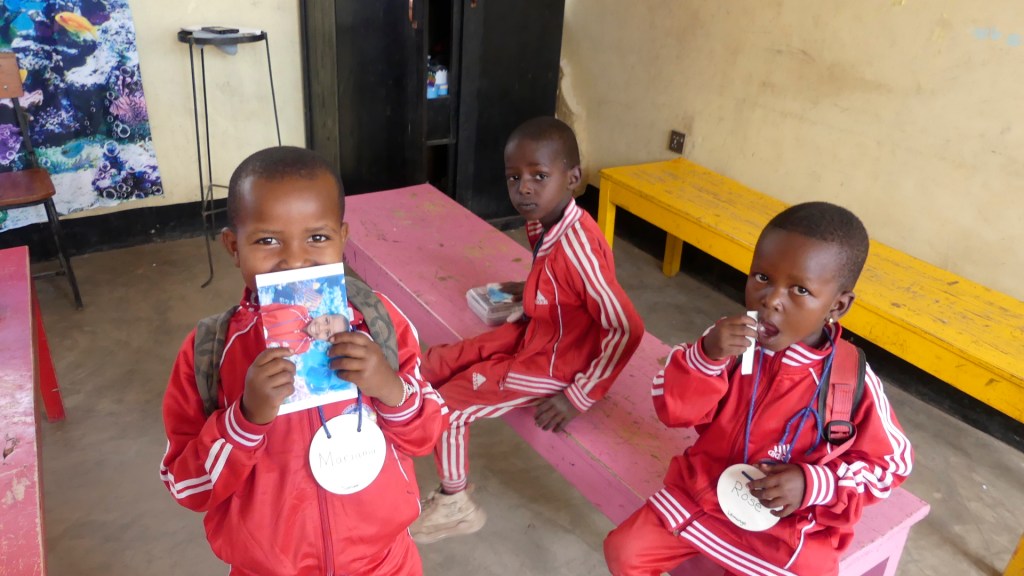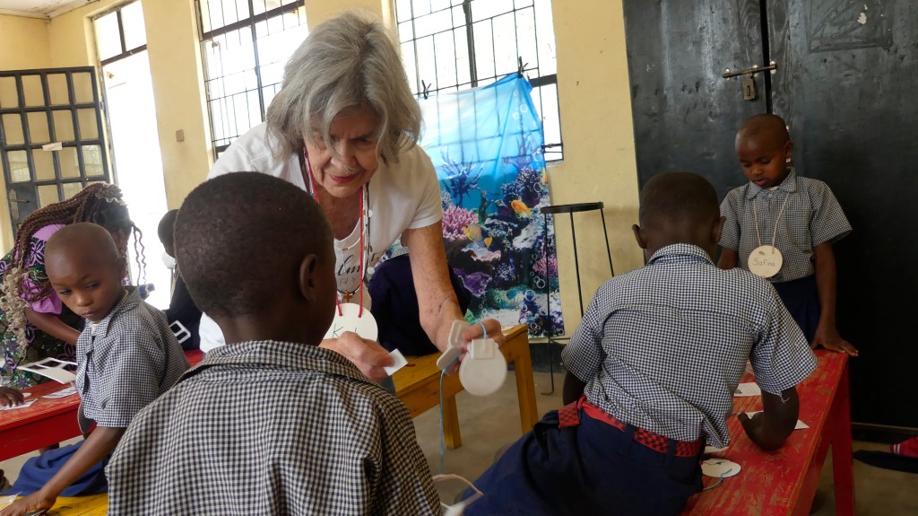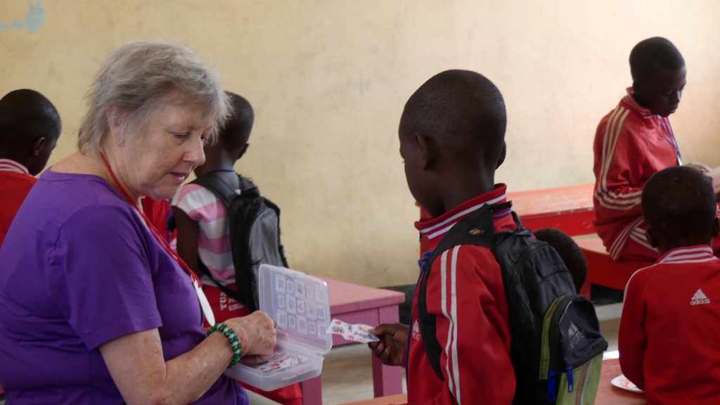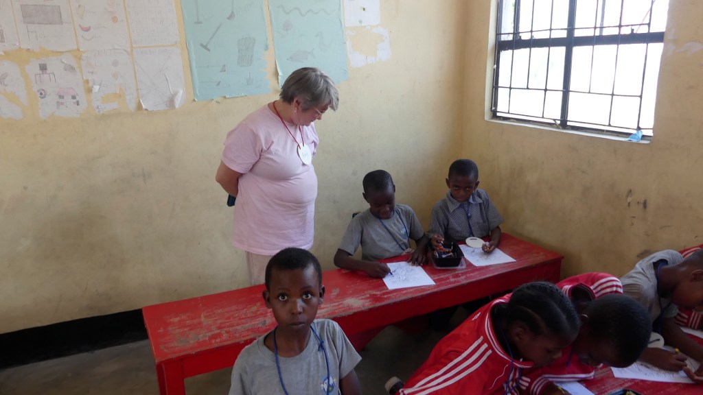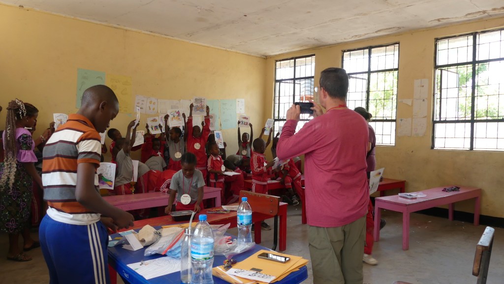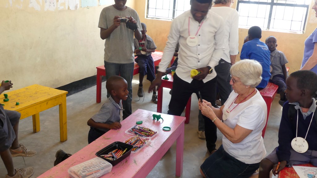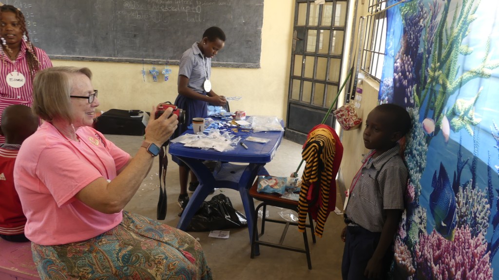 Here is Cathy taking some of the kids photos. It takes a lot of work to get them to both look at you, not imitate anything you are doing with your hand that you may do to draw their attention to you and smile. It became the running joke of me telling the kids to cheka (swahili for smile) in varying tones and voices to make them giggle. They were often warned that I would tickle them if they did not smile.