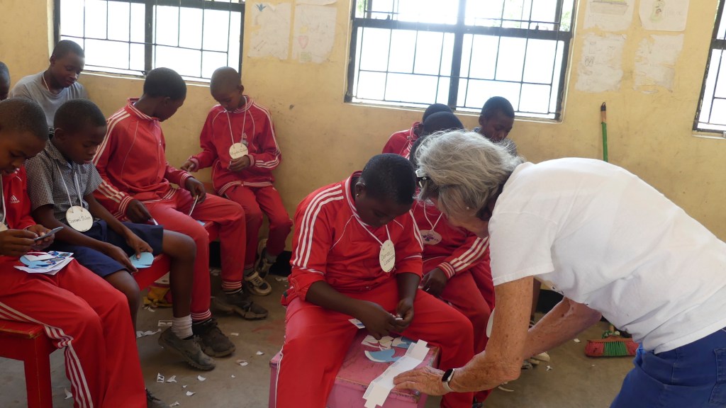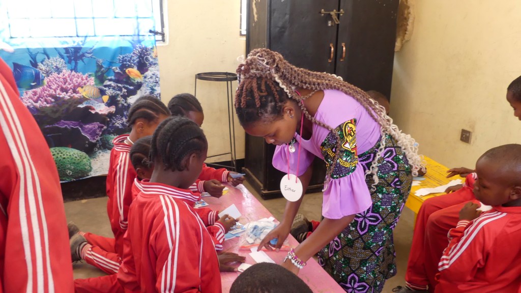 Gladness (one of our Standard 7 students who graduated and returned to help) taking a break.