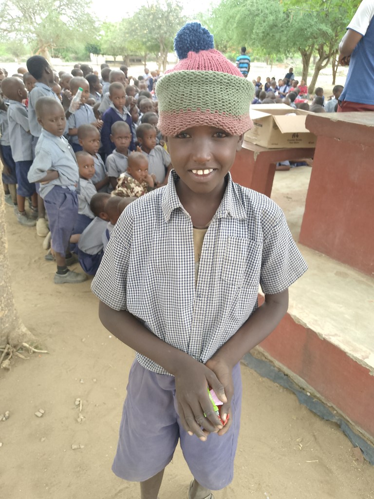 In addition we had to give awards for top students on the final exams. Not to mention the teachers all had to give a speech about doing homework over the break. Yes all 10 teachers and the headmaster gave the same basic speech wasting several hours on a very tight day. Some of you who follow me regularly know I purchased a used Sentro 48 pin circular knitting machine to see if I could teach the sewing ministry how to use it. I used that machine the week before to make stocking caps for the top student in each class. I will include all their photos after I finish with the Christmas gifts.