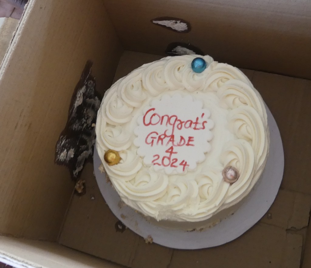 We could not let this pass without showering this group of students with attention and recognition in the form of a party. This party was for both the staff (they worked hard to get them here and the students. In addition to cake and soda they were each given a present.