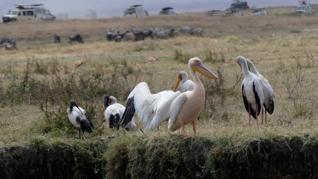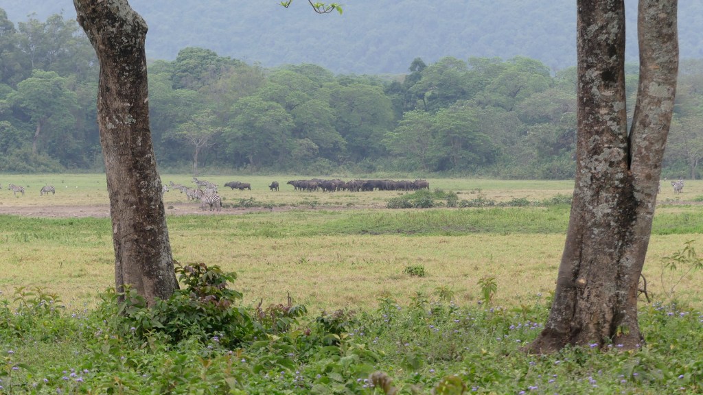The Crater is by far one of the most popular safari trips in Tanzania. They have long had several lion prides that can be found taking naps in various areas often close to roads so you can get great photographs. They have large zebra and Gnu (Wildebeest) herds, large flamingo and bird populations, Hippos, some Rhinos though they are elusive. Hyenas and Warthogs are pretty common as well. Some water buffalo can be found in groups. Occasionally you can find an Elephant, though it is normally a lone older bull that is too aggressive to be with a herd anymore. There are no giraffes in the crater because too few of the trees they like to eat. Of course the crater itself is an attraction being the largest unbroken caldera in Africa, it has its own lake and ecosystem. Not to mention the fog that often encompasses the rim gives you a feeling of going to the place time forgot. On the negative-it is the most popular safari spot and when a lion pride is spotted you have 40 or more landcruisers fighting for position for their people to take a photograph. This is also the most expensive one day park because you pay per person and per vehicle to get in.