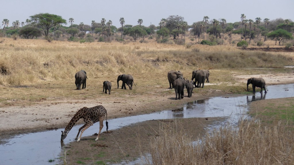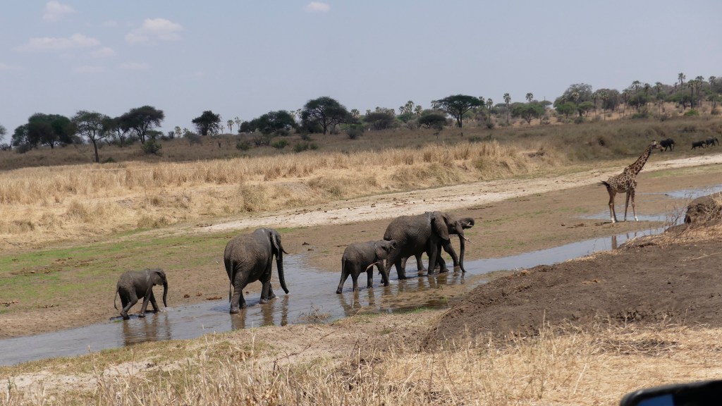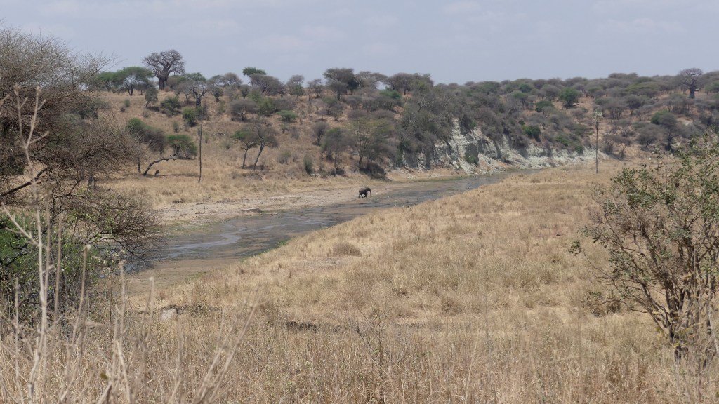 Tarangire National Park has become one o my favorite parks because it is more spread out, slightly smaller crowds. There is a lion pride that used to be easy to find but lately has become difficult to find at times. The best part is this is home of the elephants and it is normal to see herds of elephants. There are also a fair number of giraffes in the park. You get zebra, wildebeest, warthogs, water buffalo and fair number of birds especially Vultures. There are some gorgeous balboa trees here (home of the elephant and the balboa go together). This year was the first time I saw a Cheetah in the park. There is a bridge in the photographs-I am an engineer plus it has been under construction for 3 years now. The first two pictures were actually taken from our porch at the tent lodge.