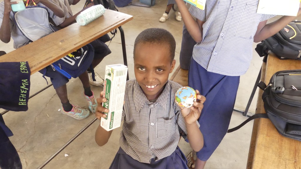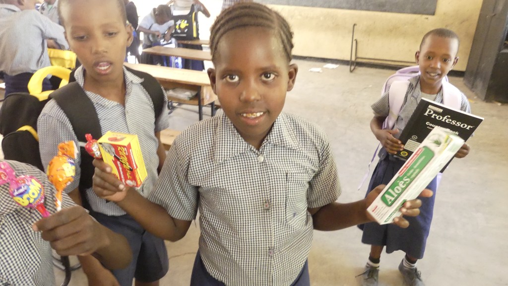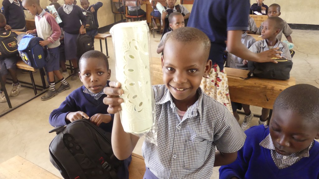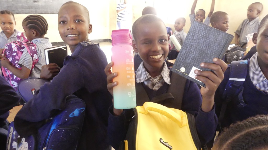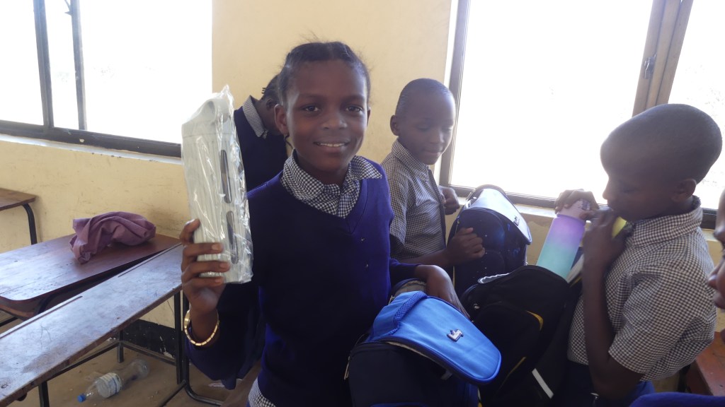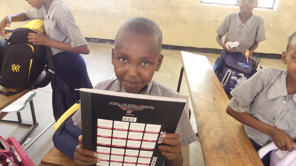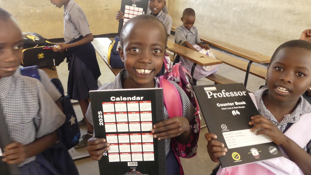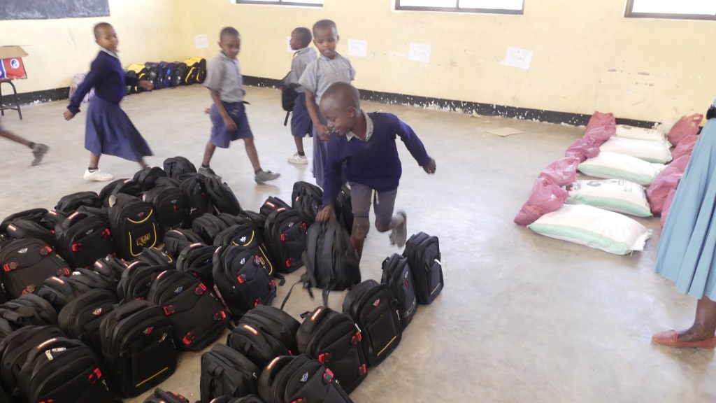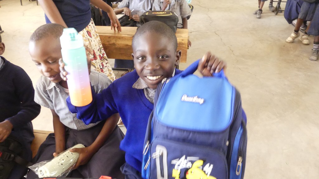 The last week of school at Tumaini Evangelistic Pre & Primary School is always one filled with anticipation as the kids start asking about their gifts the week before. So more wonderfilled than others as some ask about what may be in them and others just say “give me bag.” But when we actually give them out it is just pure joy, both for me and for them. Christmas gifts for over 300 students and 21 staff members can be a daunting task. This was the first year to push the Tanzania leadership to handle almost all of the process and that somehow made it harder than actually doing it all. The process starts the year before in collecting and transporting over some of the handmade crochet clothes (I am already getting ready for 2026). In October prices must be gathered so the money can be wired over in November (the school is always slow in getting their monthly financials together which means the monthly operations wire is later in the month) in order to purchase, assemble, transport and pack all 309 bookbags with their gifts.