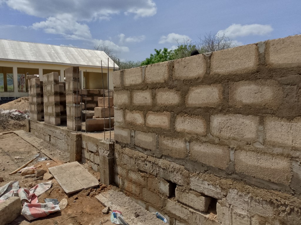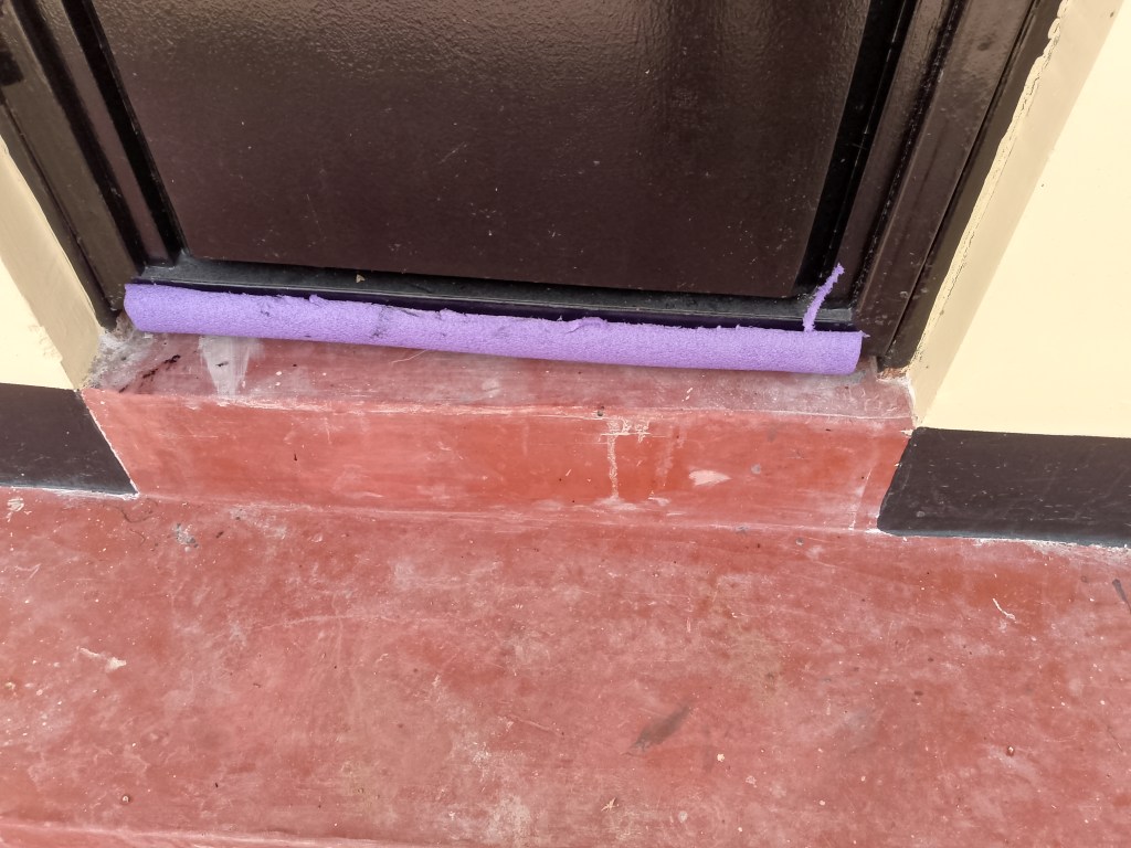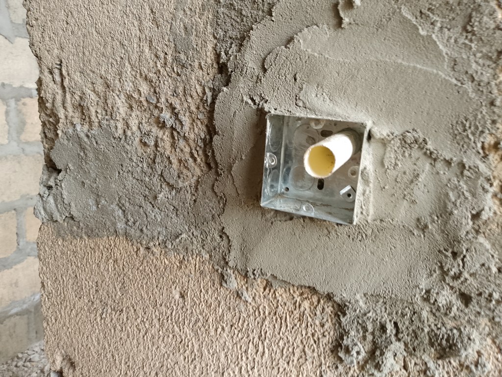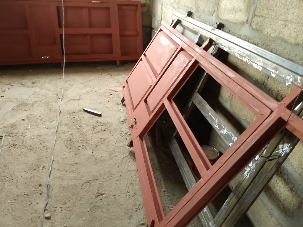 Then we bust the walls for installation of plumbing and electrical. The blocks they use are solid so no running anything inside the wall. You have to build it then bust it here. We install the window security bars, a requirement here. Metal doors, finish out our electrical. Plaster and paint the exterior and interior walls. The first coat is a concrete plaster and the second coat is more like a gypsum plaster. The ceilings are drywall with a full plaster coating not just the tape joints. The breakroom sink and cabinets. The three doors with a small roof covering them at the back of the building are the two bathrooms and rear entrance. They wanted the bathrooms facing out because of common myths about diseases and improper things being seen in bathrooms which I will not go into here. The blue pool noodle foam is temporary to keep snakes and insects out of the bathrooms until I buy a rubber trim piece here in the states and take over.
