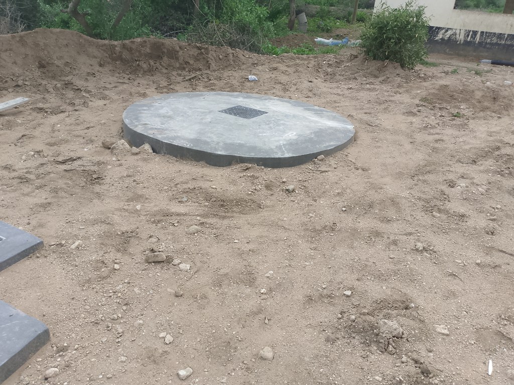 As the walls and roof trusses go up, they have a part of the crew break off to start the septic system which includes a separator and a soak pit. It was a little bit overkill to make one just for two bathrooms in an office, but the nearest one to attach to was uphill from our location and well that stuff does not run uphill.
